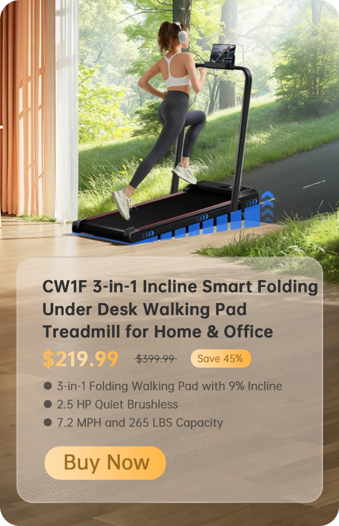 Umay CW1F 3-in-1 Incline Smart Folding Under Desk Walking Pad Treadmill for Home & Office