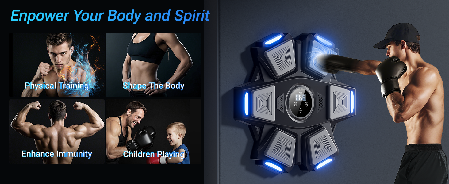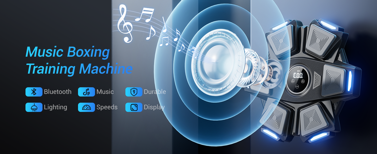 - 🎶[LED Display & Bluetooth] The LED display will show the number of hits you make and record your every progress and growth. Smart music boxing machine for adults supports bluetooth music, you can choose your favorite songs during boxing workout. Surrounding speakers and cool lights keep you immersed in your training.