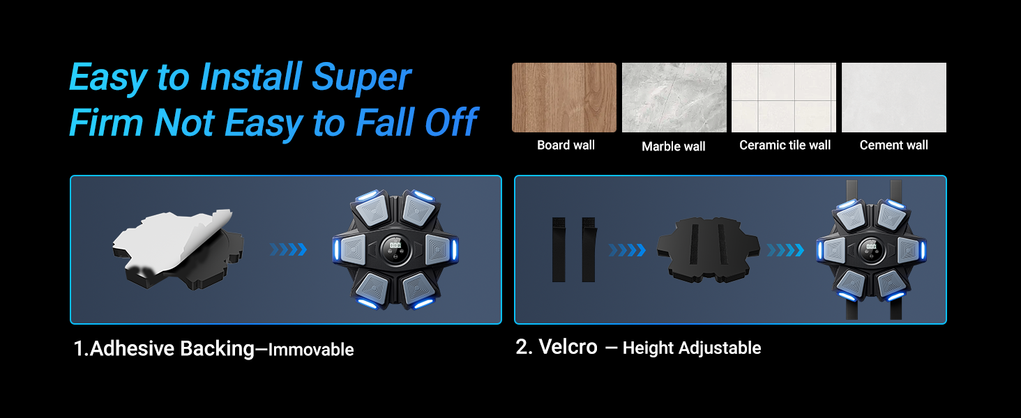 - 😀[Easy to Install] Umay boxing machine is wall-mounted, saving space and installation time. Use double-sided tape or velcro to fix the bluetooth boxing machine on the wall, and you can have a home boxing music workout machine without punching on the wall. You don't need to go to the gym. Exercise at home can save your time and money.