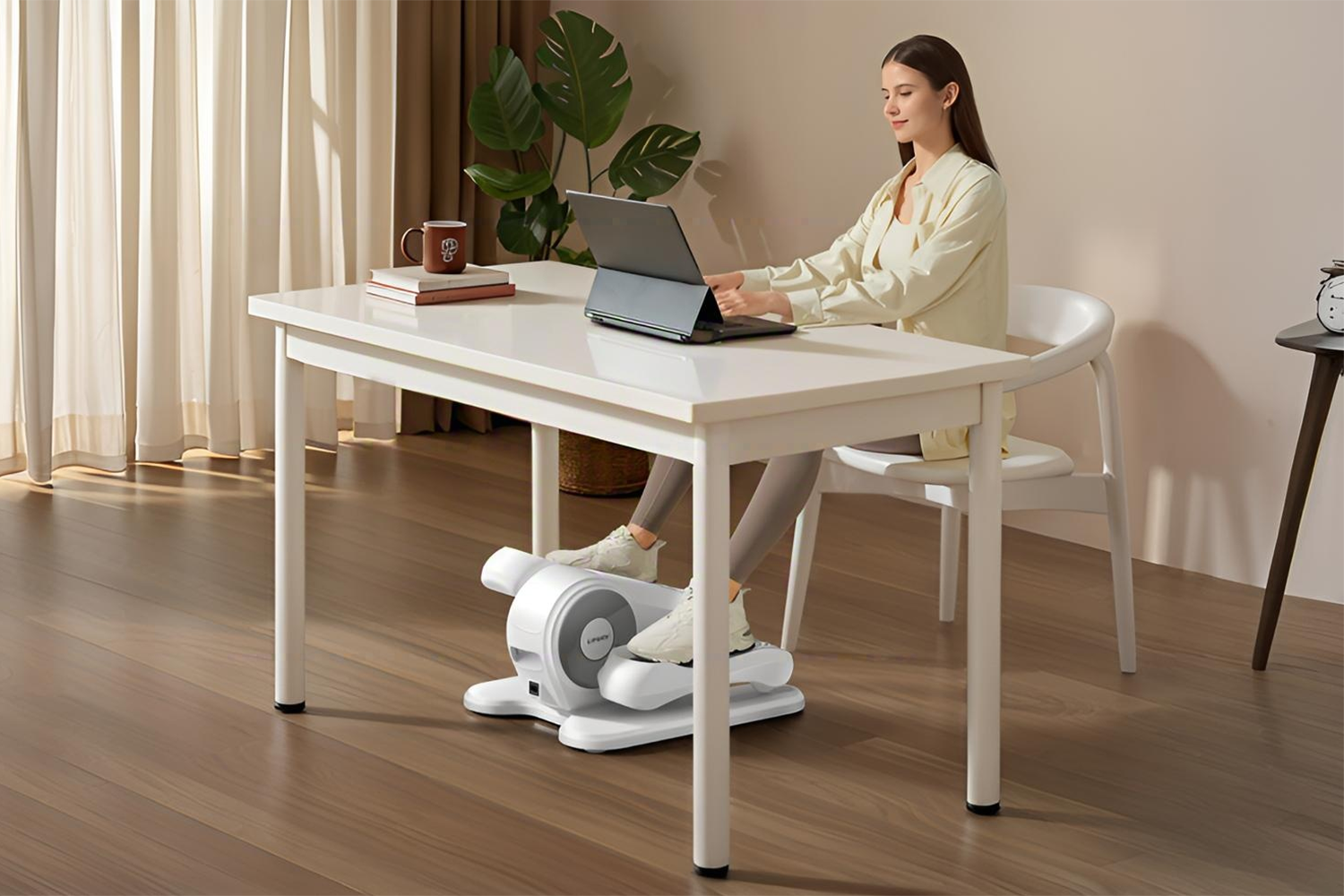 The Umay electric elliptical machine fits seamlessly under your desk, making it the ideal office exercise equipment.