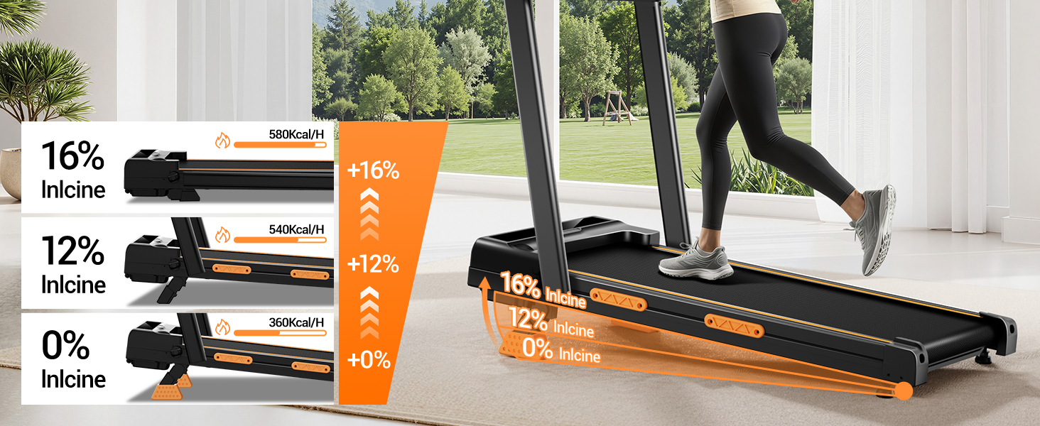 - 0-16% Adjustable Incline: Umay walking pad features two adjustable incline levels, up to 16% incline for optimal use, which increases your workout efficiency and helps you burn more calories. The walking mat can support a maximum load of 350LBS, fulfilling everyone's exercise need