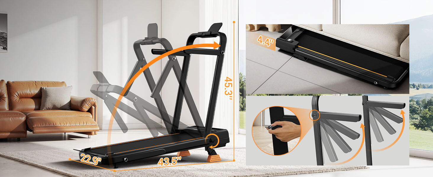 Easy to Assemble & Store: Umay Portable walking pad is easy to assemble and lightweight, and folded to 22.9×43.5×4.4 INCH. When not in use, you can fold it up and place it anywhere, such as under the sofa or bed to save space, making it ideal for use at home or in the office